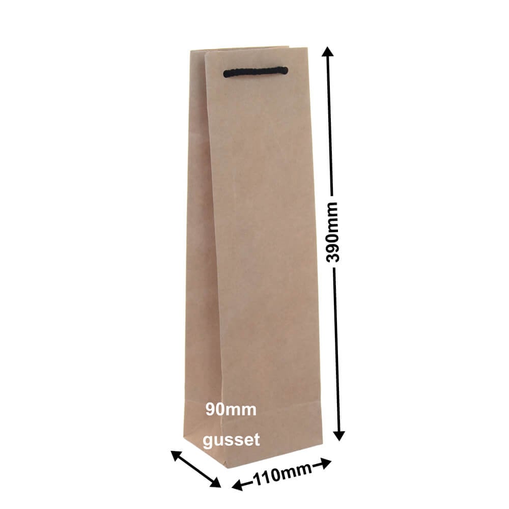 Deluxe Kraft Paper Single Wine Bottle Bags 110x390mm (Qty:100)