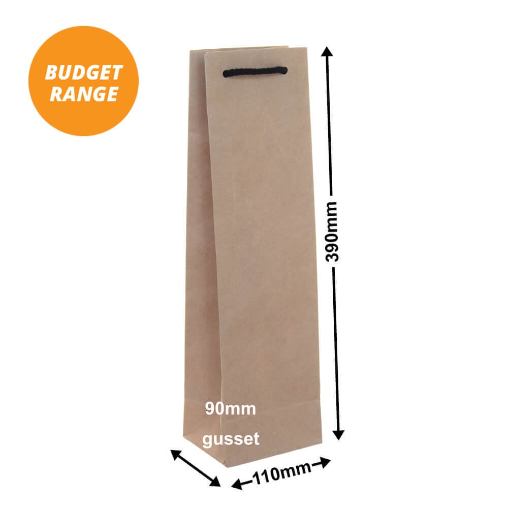 Budget Kraft Paper Single Wine Bottle Bags 110x390mm (Qty:100)