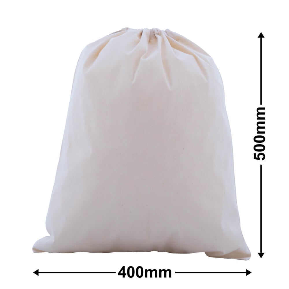Drawstring Calico Bags 500x400mm | Natural Calico (Qty:50)
