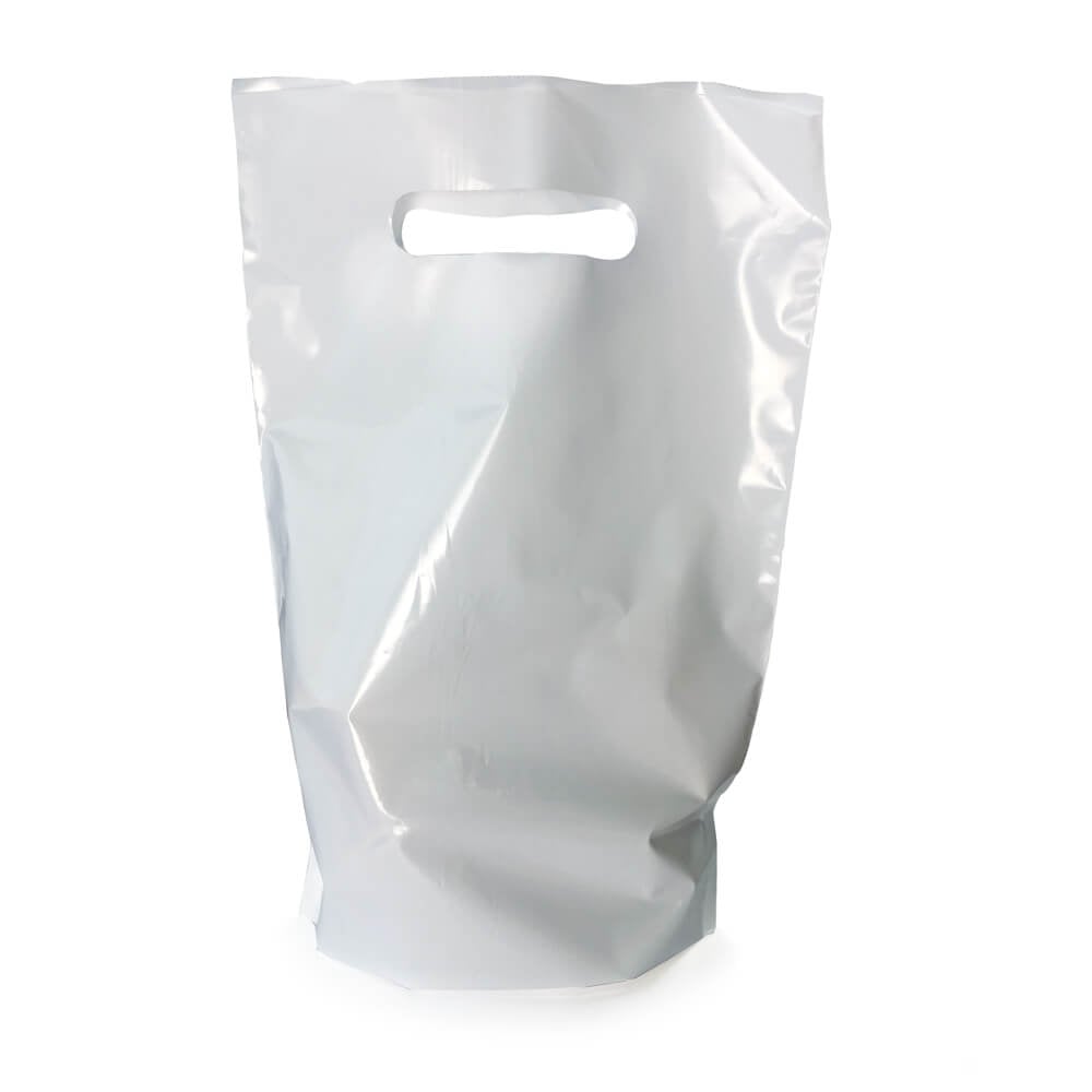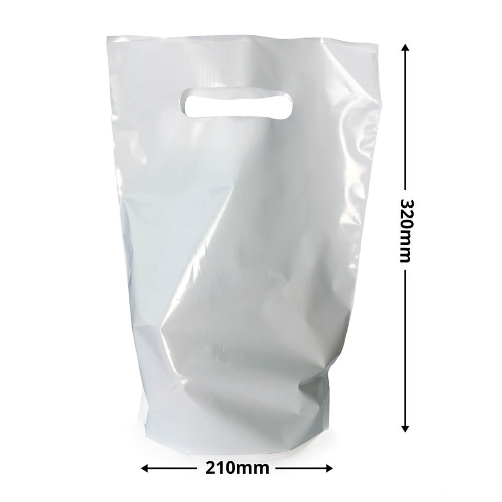 Small White Plastic Carry Bags 210x320mm + 70mm Bottom Gusset (Qty:100)