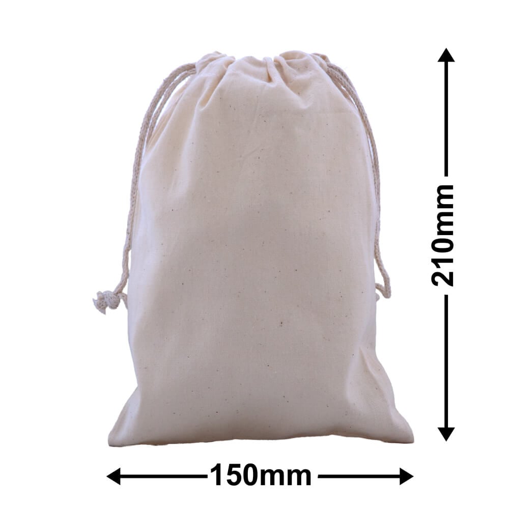 Drawstring Calico Bags 210x150mm | Natural Calico (Qty:50)