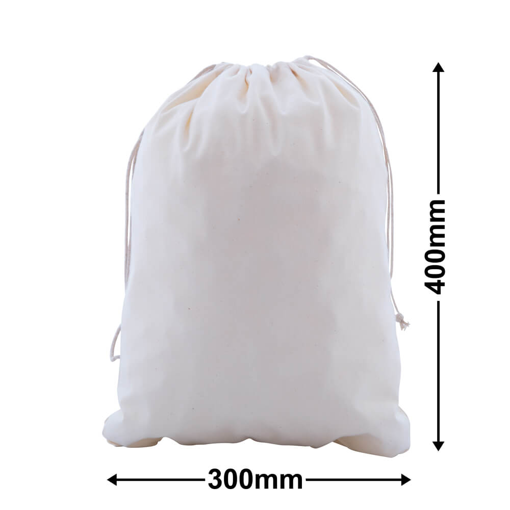 Drawstring Calico Bags 400x300mm | Natural Calico (Qty:50)