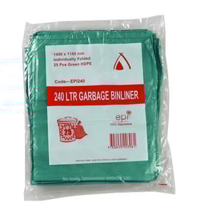 Green Degradable Bin Liners 240 litre 1150x1450mm (Qty:200)