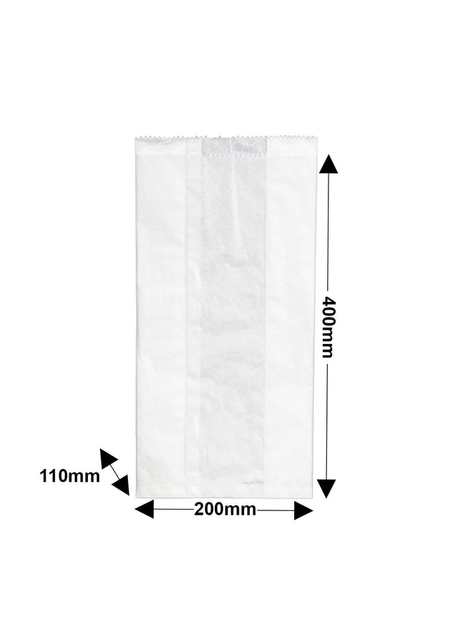 White Paper Bread Bags 200x400mm & 110mm Gusset (Qty:500)
