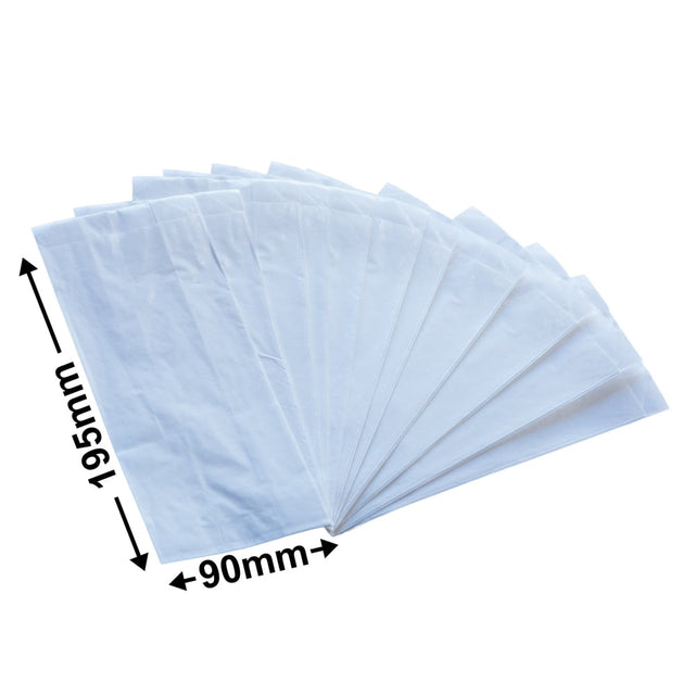 Flat White Paper Bags Size 1 90x195mm & 50mm Gusset (Qty:500)