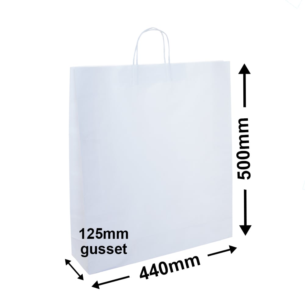 White Paper Carry Bags 450x500mm (Qty:25) is backordered and will ship as soon as it is back in stock.