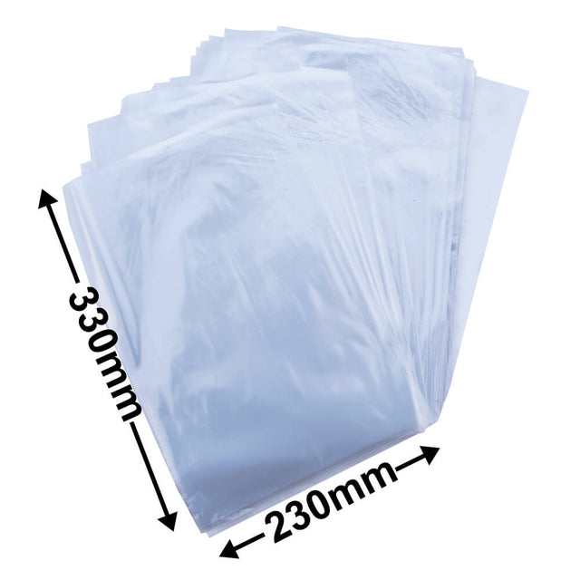 Clear 35µm LDPE poly bags are well suited for storing and packaging a variety of products. Our poly bags are made of virgin material, so they are food grade, and can be used to store or package food items. These bags can be heat sealed, twist-tied or stapled together. The measurements of these bags are 230mm wide x 330mm long.