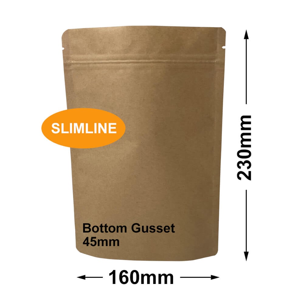 Slimline Kraft Paper Pouch Bags 160x230mm & 45mm Bottom Gusset (Qty:100)