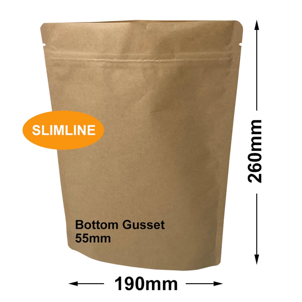 Slimline Kraft Paper Pouch Bags 190x260mm & 55mm Bottom Gusset (Qty:100)