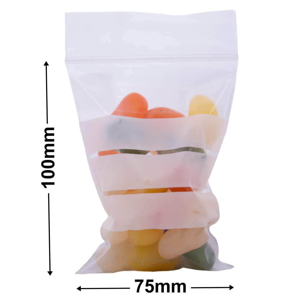 Resealable Bags with Write On Panel - 75x100mm 50µm (Qty:1000)