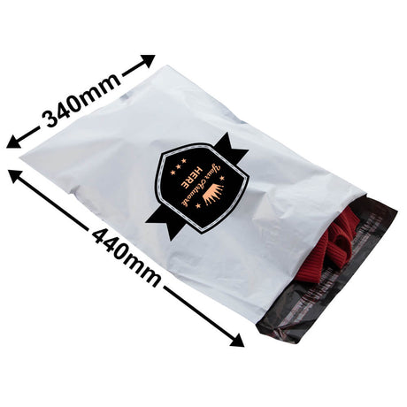 Minimum purchase of 500 bags is required.Custom Printed Tamper Proof Courier Bags 440x340mm 2 Colours 1 Side