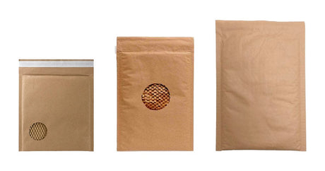 Paper Mail Pack: More economical and have Kraft paper on the outside and bubblewrap on the inside. Easy peel/seal strip – 8 sizes available