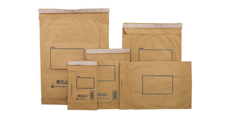 Jiffy: Padded with shredded paper on the inside, and has strong brown Kraft paper on the outside with easy peel/seal strip - 7 sizes available