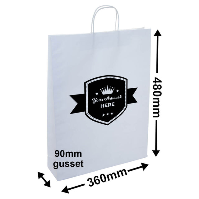 Custom Printed White Paper Carry Bags 1 Colour 1 Side 480x340mm