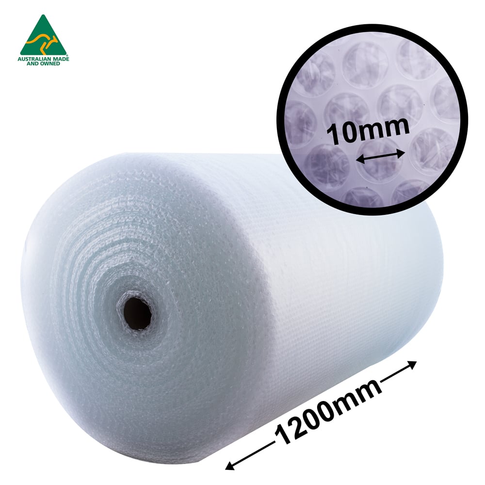 Our 10mm bubble wrap is a versatile way to package fragile items. The "10mm" refers to the diameter of each bubble. The measurements of the rolls are 1200mm x 100 metres (width x length). They can be perforated and slit to size on request, so you can have smaller width rolls. Bubble wrap is ideal for protecting delicate objects from shock and vibration during transport. Sold per individual roll.