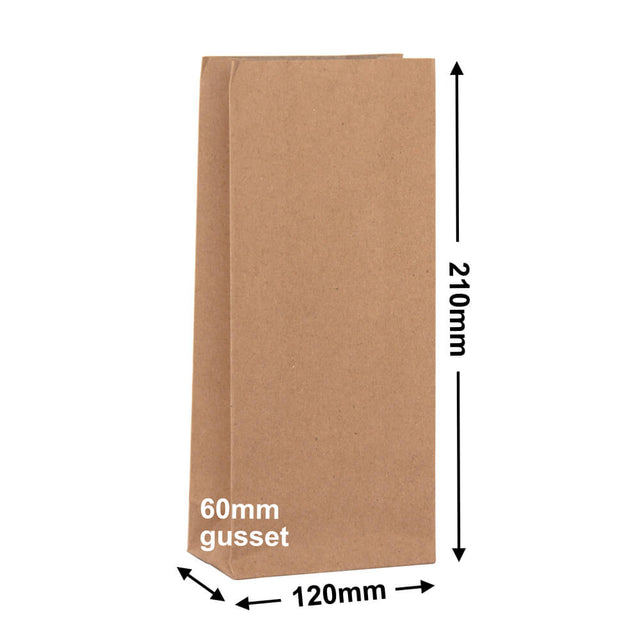 Brown Paper Grocery Bags Size 1 120x210mm & 60mm Gusset (Qty:500)