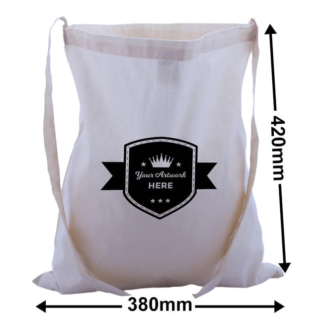 Custom Print Large Calico Shoulder Strap Bags 1 Colour 2 Sides 420x380mm