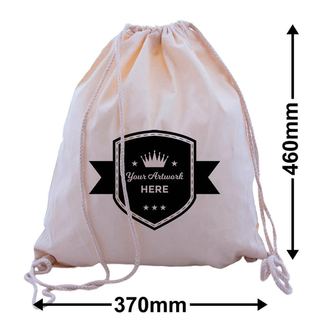 Custom Printed 1 Colour 1 Side Calico Drawstring Bags 460x370mm