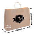 Custom Printed 1 Colour 2 Sides Boutique Brown Paper Carry Bags 310x420mm