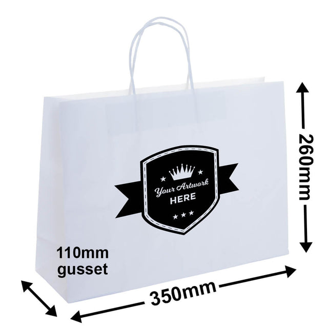 Custom Printed 1 Colour 2 Sides Boutique White Paper Carry Bags 250x350mm