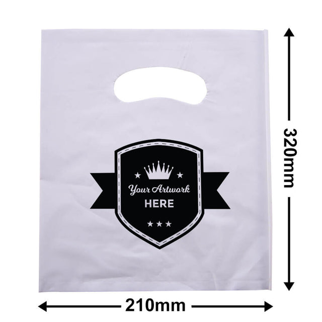 Custom Printed White Plastic Carry Bags 320x210mm 1 Colour 2 Sides