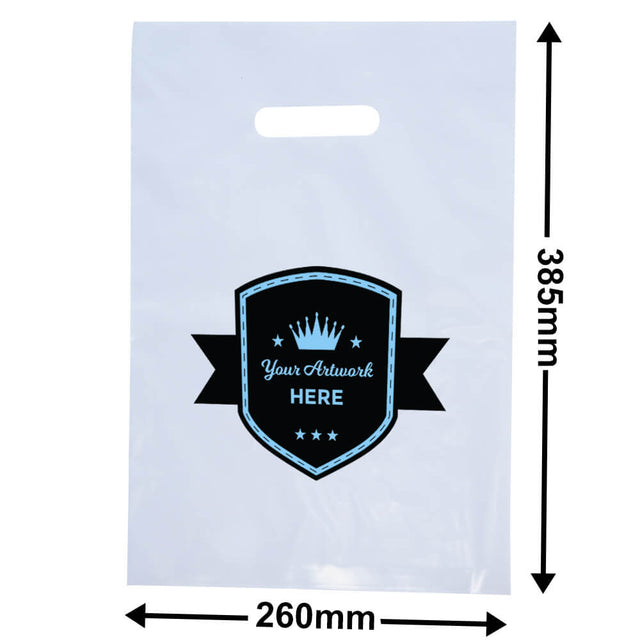 Custom Printed White Plastic Carry Bags 385x260mm 2 Colours 1 Side