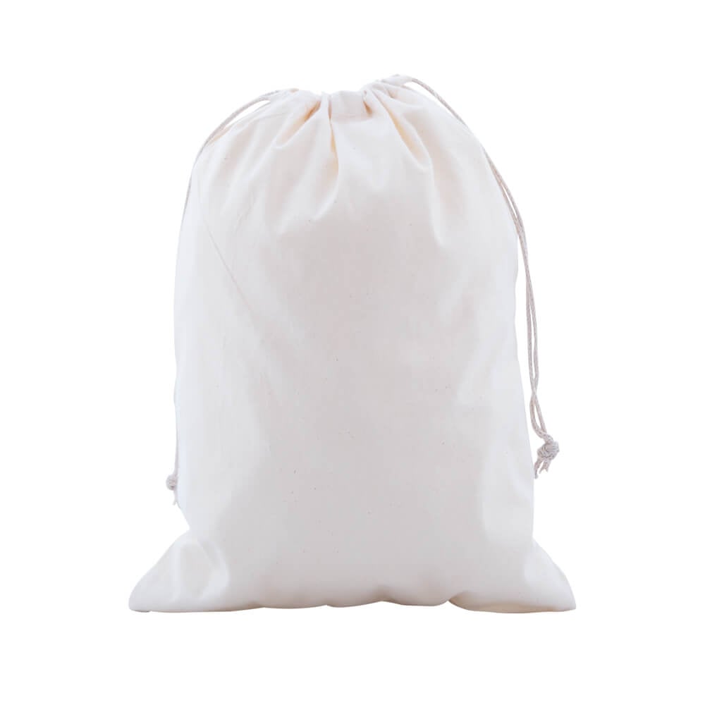 Natural drawstring calico bags - 250mm wide, 350mm long. Sold in packs of 50.