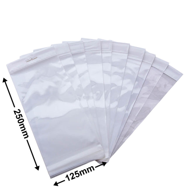 Hangsell Bags with White Headers 250x125mm 35µm (Qty:100)