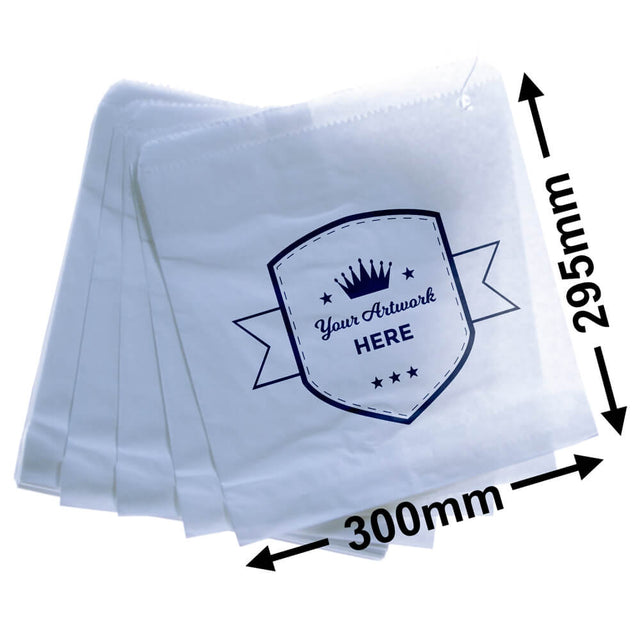 Large Printed Flat White Paper Bags - Square 300mm x 295mm 1 Colour 1 Side