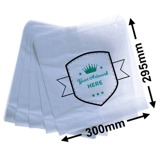 Large Printed Flat White Paper Bags - Square 355mm x 240mm 2 Colours 2 Sides