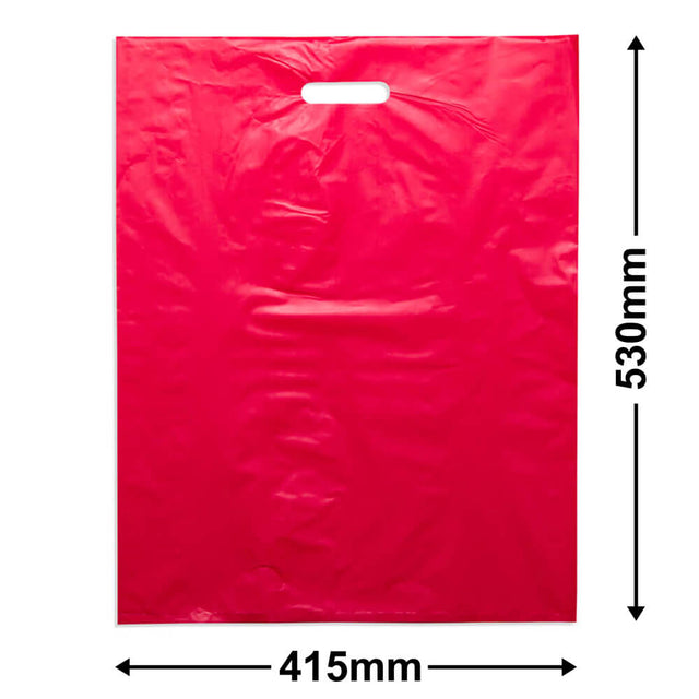 Large Red Plastic Carry Bags 415x530mm (Qty:100) is backordered and will ship as soon as it is back in stock.