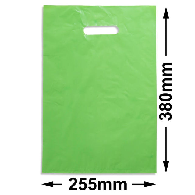 Medium Lime Green Plastic Carry Bags 255x380mm (Qty:100)