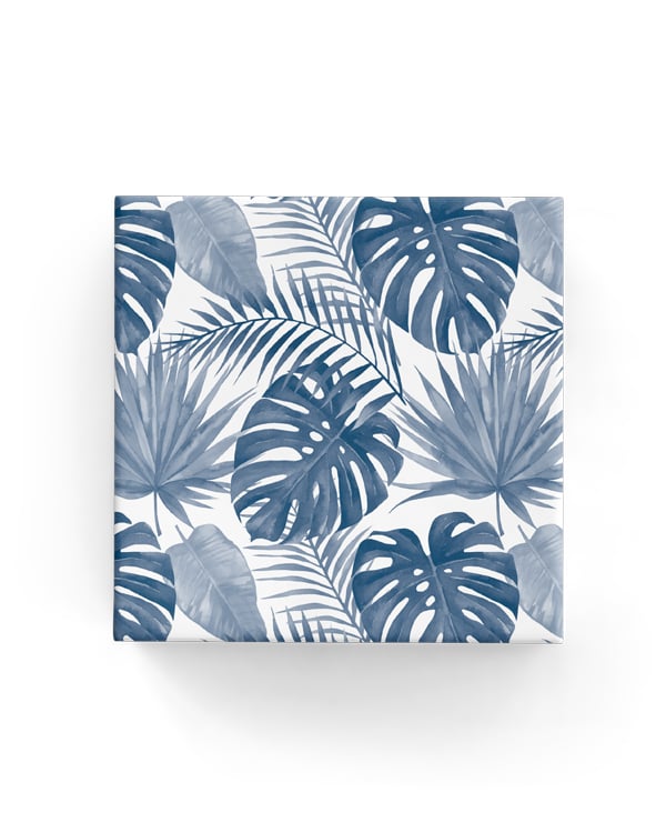 Navy Blue Leaves on White Wrapping Paper Roll (Length: 60M)